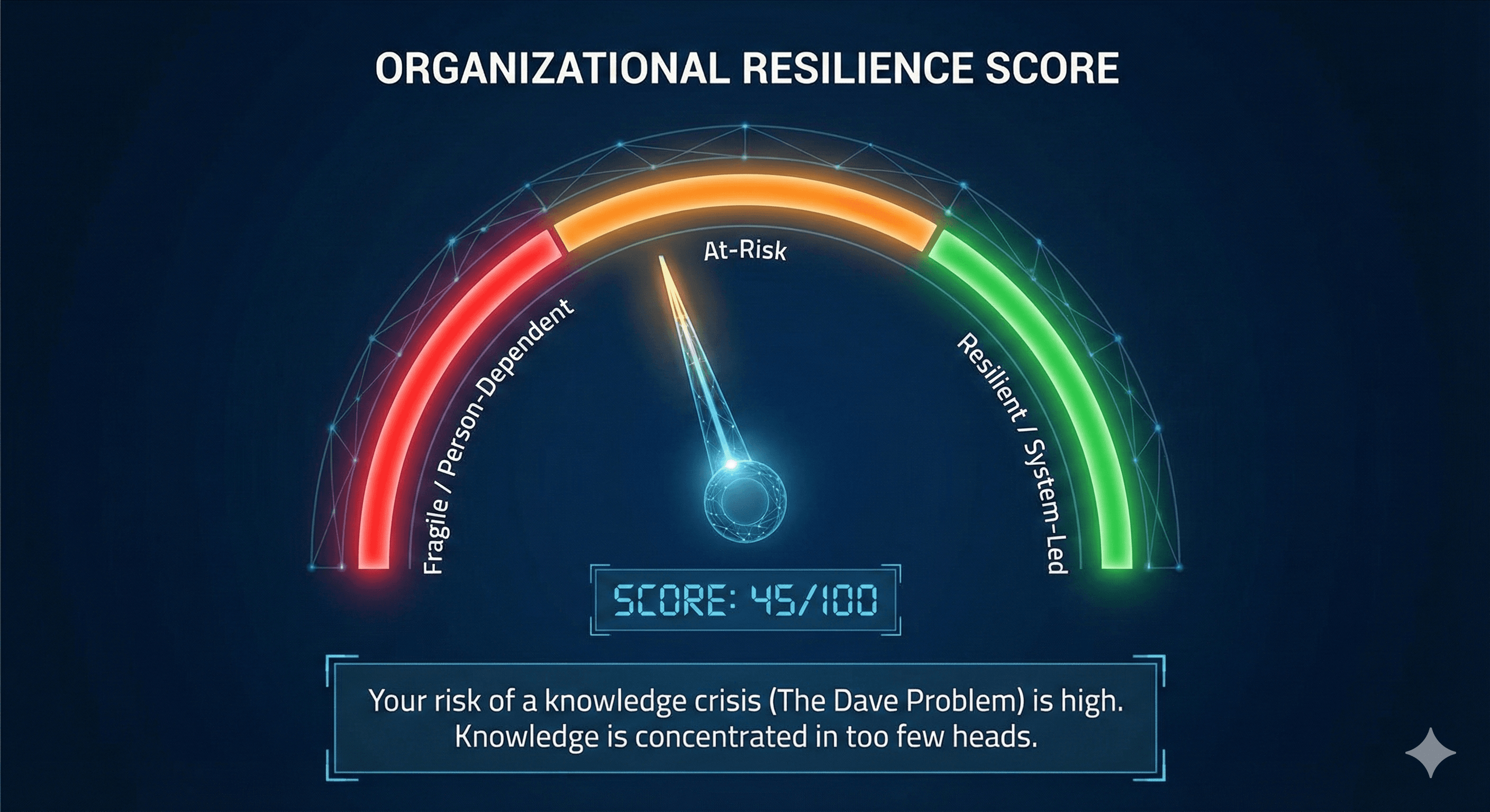 Where are your three-week holes? The Dave Audit is a 10-question diagnostic to identify knowledge concentration risk before it becomes a crisis.